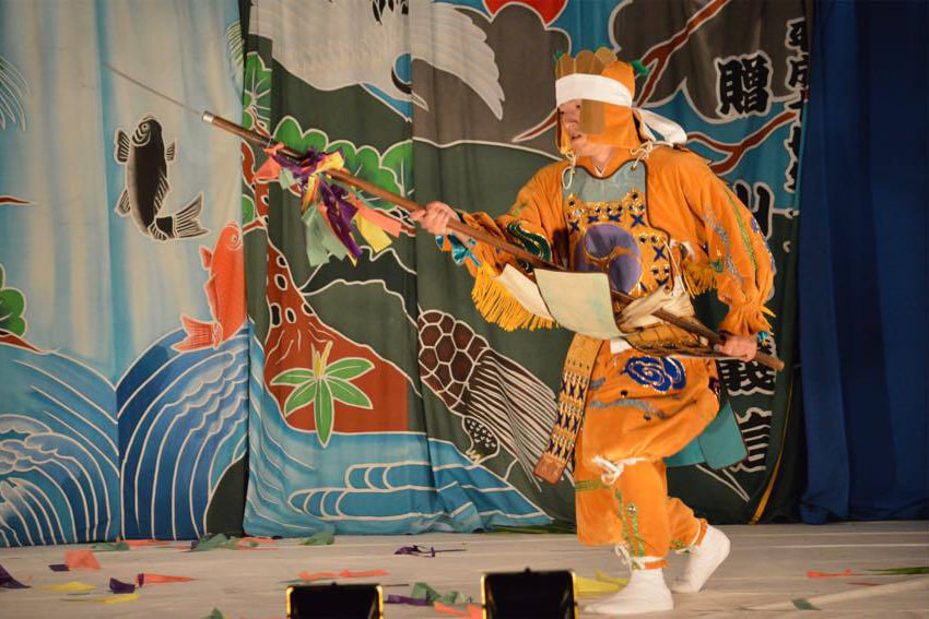 盤醐大王の遺産相続まつわる五人の王子の舞の中の一演目で4人の兄に対する末の弟中央五朗が一人でも多勢の敵と戦えるように武芸修行に励む場面を表す神楽です。祭文などはなく中央五朗に扮する舞手が長刀を手に一人で舞い続けます。この神楽で使われる長刀は新舞などで使いっている神楽用の軽いものではなく昔から神楽団に伝わる長刀で重さもあり、これを舞の終盤に指先で激しく回す場面があり見どころの一つとなっております。