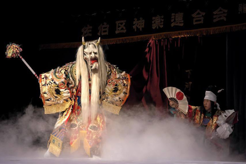 下河内神楽団の塵倫は、二神一鬼の六調子で演じております。